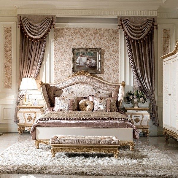 Nội thất sang trọng là điểm nhấn không thể thiếu trong thiết kế nội thất phòng ngủ kiểu Pháp. Đây có thể là cùng một món đồ cổ điển hoặc đồ cổ mà bạn cứu và sơn sửa lại hoặc sơn. Hãy nhớ rằng, mộc mạc kết hợp tinh tế là thương hiệu của phong cách đồng quê Pháp, và đồ nội thất sang trọng là một cách để thêm vào vẻ ngoài rất dễ dàng. Bên cạnh đó, một chút lấp lánh của ánh đèn là vô cùng cần thiết đấy nhé. Cho dù đó là gỗ mộc mạc hay nhỏ giọt với pha lê, đèn chùm là một nét hoàn thiện hoàn hảo cho phòng ngủ kiểu nông thôn Pháp. Đây là một trong những yếu tố mà bạn nên cố gắng thêm vào phòng ngủ của mình. Bên cạnh đó, những nét chạm khắc bằng vàng hoặc bạc làm tăng thêm vẻ sang trọng dễ dàng cho một phòng ngủ kiểu nông thôn Pháp. Thêm một cặp khung ảnh được nhân đôi hoặc một số chân đèn thủy tinh thủy ngân vào lớp áo giả của bạn để thêm gợi ý đó. Hoặc bạn có thể làm tăng thời gian với những chiếc bàn bên được nhân đôi hoặc đầu giường mạ vàng, khả năng tỏa sáng và nâng tầm đẳng cấp vô cùng tuyệt vời.