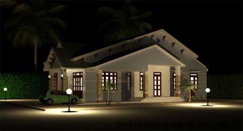 Nhìn chung, mẫu thiết kế nhà đẹp có vẻ rộng rãi và chắc chắn bởi các trụ cột hỗ trợ. Tông màu chính là vàng và trắng, tạo không gian sáng sủa, sạch sẽ và tinh khiết. Dù ngày hay đêm, mô hình cấp 4 này xuất hiện thực sự rất ấn tượng, đèn trang trí tăng ánh sáng cho toàn căn nhà. tạo sự đẹp mắt và nâng cao tính thẩm mỹ.