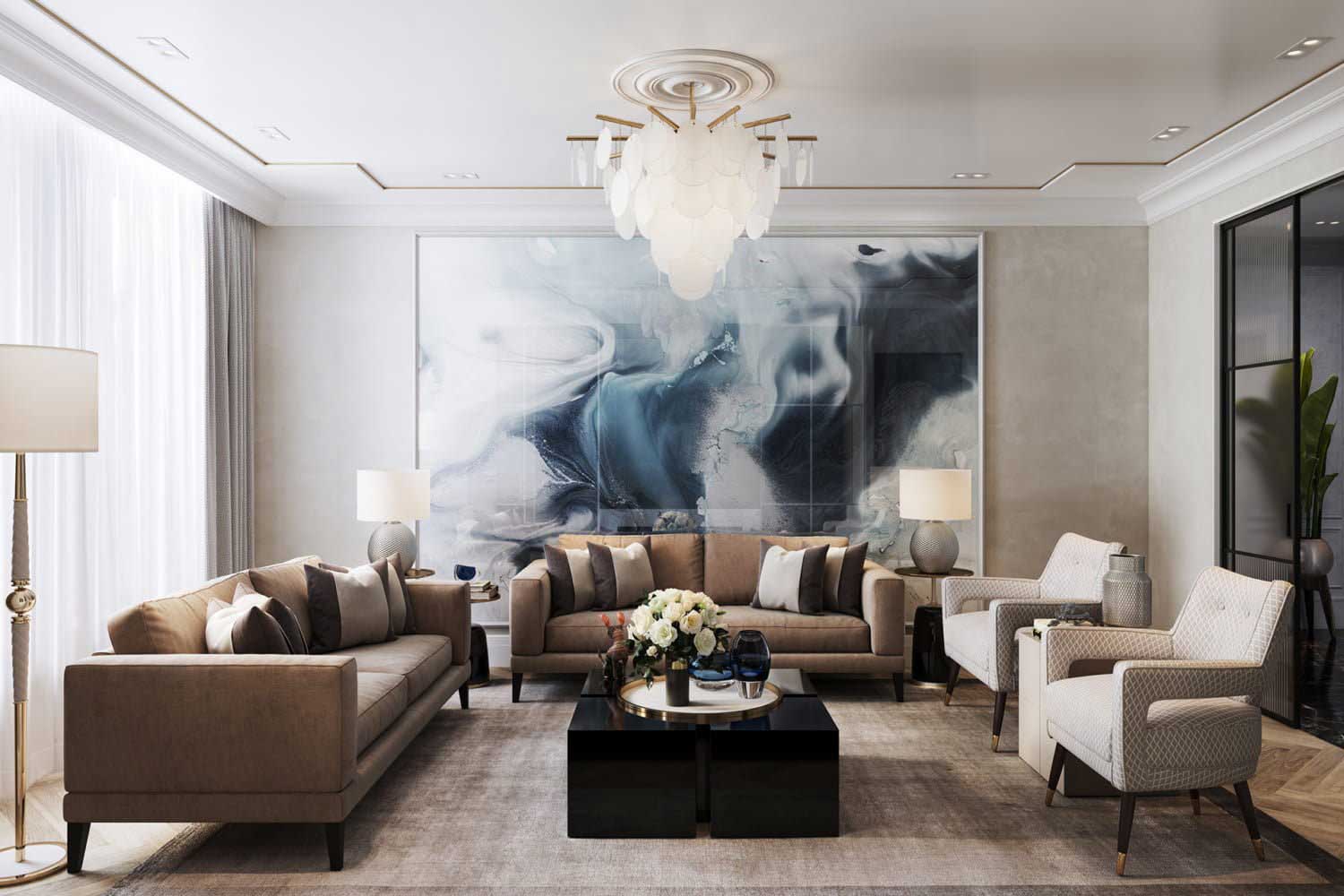 Ngoài ra vẫn trong yếu tố nghệ thuật còn là thủ pháp trang trí.Ý tưởng độc đáo, thủ pháp mới lạ, kĩ thuật thiết kế nội thất hiện đại là yếu tố làm nên nét độc đáo cho nội thất nhà ống 100m2.
