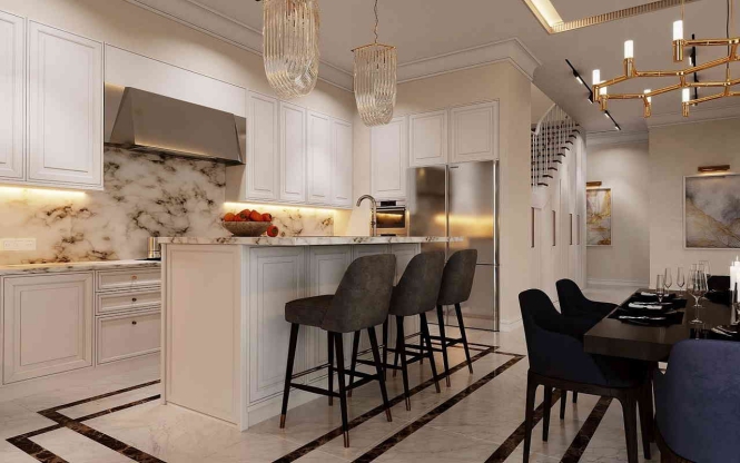 Cuối cùng là những họa tiết hoa văn điêu luyện trong thiết kế phong cách nội thất tân cổ điển. Đây là một trong những yếu tố tạo ra sự mềm mại và nhẹ nhàng cho nội thất tân cổ điển. Là sự thừa hưởng của nền văn hóa cổ điển và cộng hưởng của nét đẹp trang trí hiện đại. Phong cách thiết kế nội thất tân cổ điển đã mang đến nét đẹp độc đáo trong từng chi tiết. Vừa sang trọng huyền bí và điêu luyện nhưng lại vô cùng thanh tao nhẹ nhàng của hiện đại. Với vẻ đẹp của phong cách thiết kế này bạn hoàn toàn có thể trang trí kèm những vật trang trí như đèn chùm làm cho không gian nhà thêm sáng và lung linh hơn vào ban đêm.
