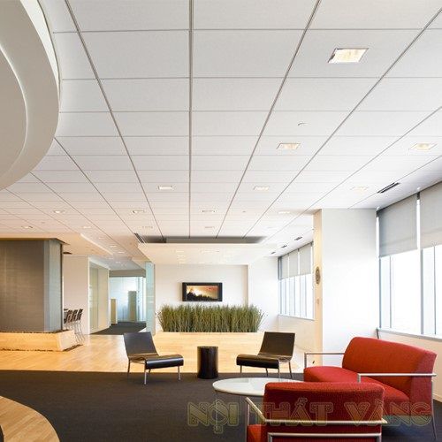 Mẫu trần này đánh giá phù hợp với không gian của văn phòng vì trong không gian ấy càng thoáng, càng rộng thì càng tốt, mà trần thạch cao khung nổi lại đang làm rất tốt điều đó cho người sở hữu. Nhìn vào không gian bên của văn phòng này có thể nhìn thấy một không gian thoáng, rộng. Kiến trúc sư bố trí hệ thống cửa kính lớn, dọc theo chiều dài của văn phòng để lấy sáng tự nhiên tối đa vào trong không gian. Kết hợp thêm cây xanh để tạo được không gian thông thoáng, tươi mát bởi màu xanh đến từ thiên nhiên.