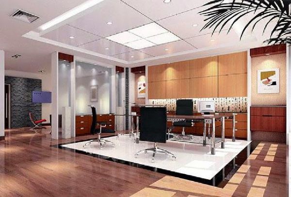 Phần sàn nhà với gạch giả gỗ bao bên ngoài, phần diện tích bên trong sử dụng gạch lát trắng viền đen khiến cho toàn bộ diện tích trở nên nổi bật. Đây là gợi ý cho không gian phòng cho lãnh đạo đang rất được chú ý.