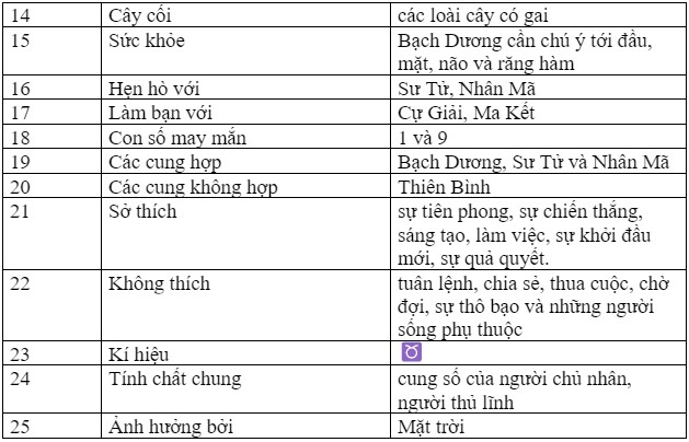 Nhóm người thuộc cung Bạch Dương luôn được biết đến với phần nổi trội và khác biệt hoàn toàn so với phần còn lại. Khi chính họ luôn sẵn sàng làm người tiên phong hay có thể người với tố chất cao trong việc lãnh đạo mọi người tham gia vào các sự kiện quan trọng. Đặc biệt hơn cả là những người này luôn hăng, say chuyên tâm làm việc và sẽ tuyệt vời hơn khi được làm việc, kết hợp với những người thuộc cung Nhân Mã.