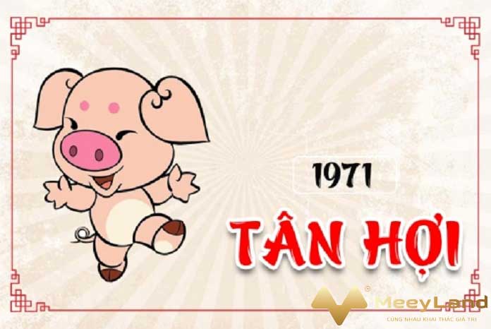 Trong 12 con giáp tuổi Hợi là con giáp đứng cuối cùng, tuy nhiên người tuổi này được xem là vận mệnh an nhàn, thong thả hơn những tuổi khác. Tùy thuộc vào can chi mà có Quý Hợi, Tân Hợi, Ất Hợi, … Cùng xem người tuổi Tân Hợi 1971 có bản mệnh tử vi ra sao. Người sinh năm 1971 có năm sinh dương lịch là 1971, năm sinh âm lịch gọi là Tân Hợi. Đối với nam là Khôn (Thổ) thuộc Tây tứ mệnh và đối với nữ là Tốn (Mộc) thuộc Đông tứ mệnh. Mệnh của người tuổi Tân Hợi là mệnh Kim, Thoa xuyến kim hay còn gọi là trang sức bằng vàng, xương con lợn tinh tướng con cọp. Màu sắc tương sinh là màu đỏ, màu hồng, màu cam, màu tím còn màu tương hợp là màu trắng. Những con số hợp tuổi này là số 2, số 5, số 8 và số 9. Vận mệnh của của nam mạng và nữ mạng tuổi này có thể nói khái quát như sau.