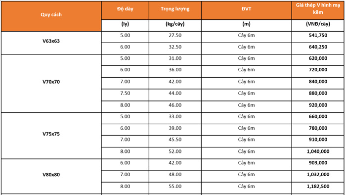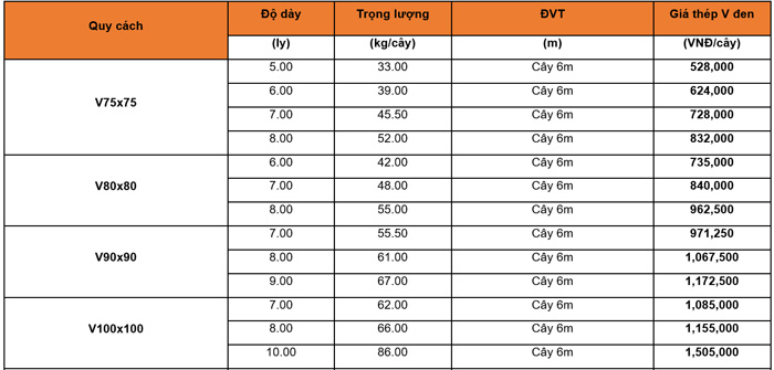 Trên thị trường có nhiều thương hiệu sản xuất thép chữ V, nhưng chung quy có 2 dòng sản phẩm chính là thép V đen và thép V mạ kẽm. Bởi đa dạng về mẫu mã, kích thước, chủng loại nên giá sắt thép chữ V cũng khác nhau. Thời gian gần đây, giá thép hình V trong nước cũng chịu sự tác động của giá sắt thép trên toàn thế giới. Chính vì vậy mà báo giá thép hình V sẽ không giống nhau ở các đơn vị phân phối. Để chủ đầu từ và các nhà thầu biết thêm thông tin về giá thép hình V hiện nay, chúng tôi xin gửi tới bảng báo giá thép xây dựng mới nhất sau đây.