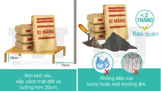 Hỗn hợp vữa sau khi trộn khuyến cáo nên sử trong vòng 90 phút; các nguyên liệu khi trộn cùng xi măng phải sạch để đảm bảo chất lượng đồng nhất cho hỗn hợp; khi trộn nên trộn kĩ để các nguyên vật liệu xây dựng hoà trộn vào nhau tạo nên một hỗn hợp mịn, dẻo. Đối với cách bảo quản thì sau khi thi công xong hạng mục nào trong thời gian đầu những ngày nắng nóng nên bơm nước để làm mát và hạn chế rạn nứt công trình; nơi lưu trữ xi măng phải luôn khô ráo, có mái che và chống ẩm; xi măng không được xếp quá 10 bao trên một hàng dọc để tránh việc bị đổ, gây nguy hiểm cho mọi người; ở lớp nền có thể trải bạt hay kê gạch để xi măng không bị ẩm và xếp các bao cách tường 20 phân tránh ẩm mốc; không dùng móc câu để kéo bao vì như vậy bao sẽ bị rách gây lãng phí xi măng; …