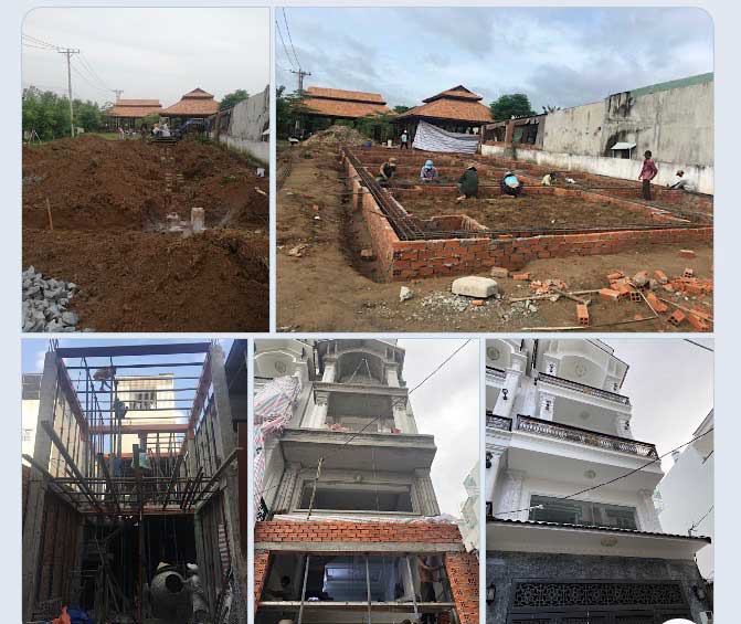 - Thi công móng, đổ dầm, sàn, công trình phụ, bể nước, hố gas,...