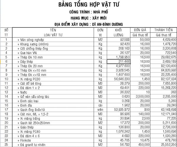 - Gói vật tư trung bình khá: 4.800.000VNĐ/m2 - 5.000.000 VNĐ/m2