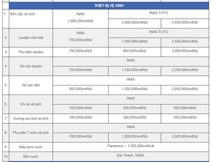 Với vật tư hoàn thiện loại phổ thông dành cho những chủ đầu tư có mức chi phí vừa phải đa số là ở khu vực nông thôn thì có đơn giá hiện nay là 4.500.000 VNĐ/m2.