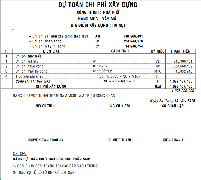 Tiếp đến lên dự trù kinh phí cho xây dựng nhà.