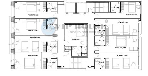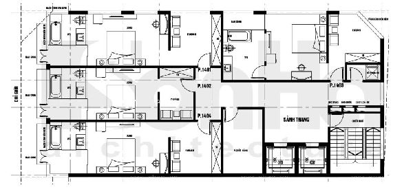 Gợi ý đến quý gia chủ xây khách sạn tại quận 2 mặt bằng tham khảo như sau: Từ vị trí cầu thang máy đi ra, bên tay phải bắt cầu thang bộ và nhà kho các tầng và 4 phòng nghỉ với diện tích khá lớn. Trong mỗi phòng này được bố trí đầy đủ tiện nghi như: giường, tivi, nhà vệ sinh và gia chủ tham khảo cách bố trí bên trên.