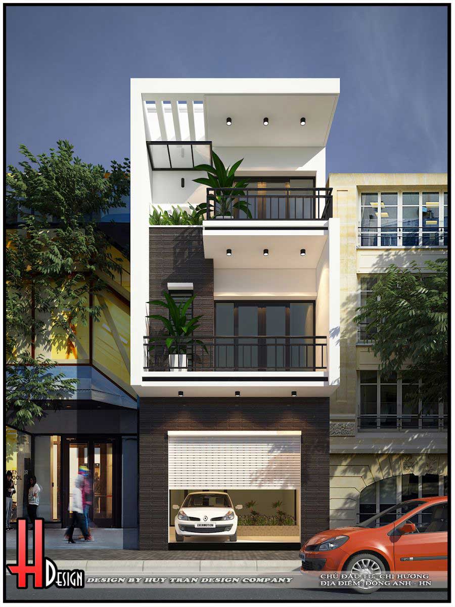 Thiết kế nhà đẹp có gara ô tô phía trước dùng để đậu xe thuận tiện. Mặt tiền phía trước nhà 3 tầng sử dụng màu sắc nhẹ nhàng, các đường nét khỏe khoắn trẻ trung năng động đặc biệt ban công xanh được bố trí xen kẽ tạo ra không gian xanh gửi gắm thiên nhiên vào nhà tốt nhất.