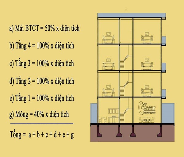 Để gia chủ có thể tự mình lên dự toán kinh phí xây nhà 4 tầng 80m2 chúng tôi xin được cụ thể cách tính chi phí xây nhà theo m2 xây dựng. Đây là cách dùng phổ biến và rất dễ thực hiện. Diện tích tính giá xây nhà 4 tầng 80m2 theo m2 xây dựng phụ thuộc vào diện tích tính giá và đơn giá xây dựng.