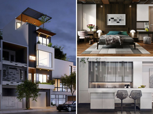 Hình ảnh 3D, phối cảnh bản vẽ, mặt bằng tổng thể nhà 4 tầng 80m2