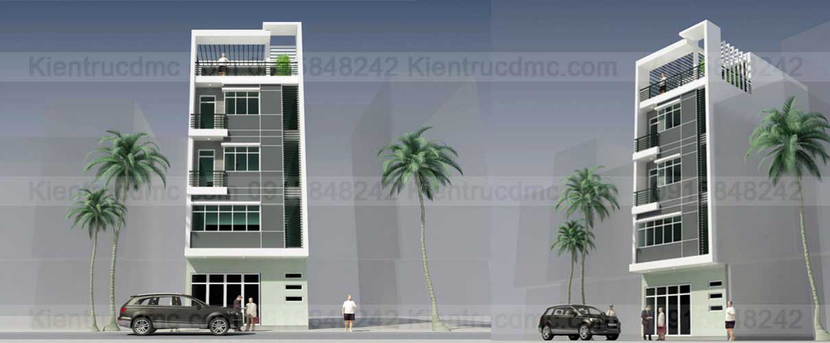 - Phương án thứ hai rất phù hợp cho ngôi nhà có 3 thành viên và muốn kết hợp không gian sinh hoạt và kinh doanh. Khu vực tầng 1, 2 có thể hoán đổi tầng 3, 4 tùy theo chủ ý của gia chủ. Phương án này vẫn đáp ứng được nhu cầu sinh hoạt, có chỗ để oto, kết hợp cho thuê kinh doanh để kiếm lời mà vẫn có một nơi nghỉ ngơi thư giãn ở khu vực tầng 5.