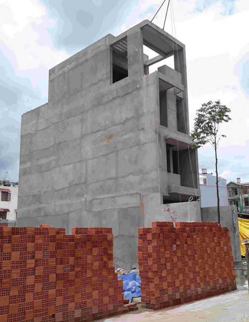 - Xây dựng phần khung bao gồm phần tường bao quanh và khu vực cầu thang. Sau đó tiến hành tô trát tường.