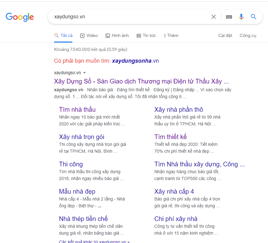 Sau đó thì chúng ta sẽ click chuột và đúng trang web: Xaydungso.vn để thực hiện việc truy cập vào đúng trang web của xaydungso.vn