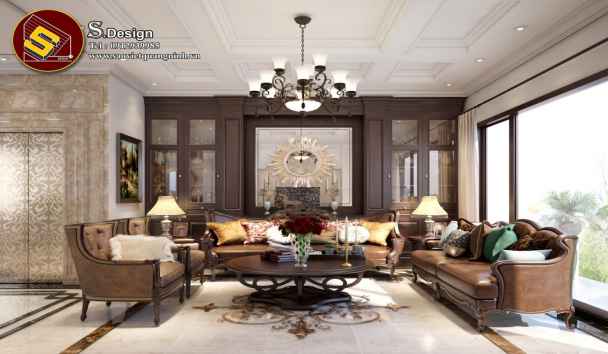 Tiếp theo là bản thiết kế thứ hai của công ty kiến trúc & amp nội thất Gia Vũ mẫu này với gam màu chủ đạo chính là màu nâu sậm tạo cho không gian căn phòng khác vẻ đẹp sang trọng và quý phái. Các ghế sofa cùng bàn trà được sắp xếp trong gian phòng khách trên bàn có trang trí lọ hoa tươi tạo vẻ trẻ trung và hương thơm dễ chịu cho không gian ngôi nhà, các ghế đều có gối tựa kẻ dọc như các dọc dưa trông rất thú vị và hấp dẫn. Phía trên trần phòng khách được trang trí đèn chùm pha lê nhiều bóng tỏa ra với ánh sáng vàng ấm áp cho các thành viên trong gia đình cảm giác gần gũi ấm cúng và sung túc. Các bạn đến với công ty xây dựng nội thất Gia Vũ đều được trải nghiệm và thử mình với các sản phẩm nội thất chất lượng nhất và giá cả rất phù hợp với túi tiền người tiêu dùng. Vậy nên các bạn cứ yên tâm để Gia Vũ thiết kế nội thất nhà cho nhé.
