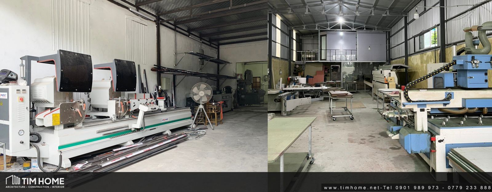 Xưởng sản xuất cơ khí - nhôm kính và lắp đặt nội thất khép kín của Tim Home trang bị máy móc hiện đại, đội ngũ thi công chuyên nghiệp với công nghệ - quy trình đạt chuẩn trong sản xuất.