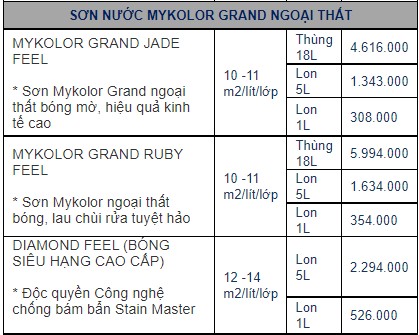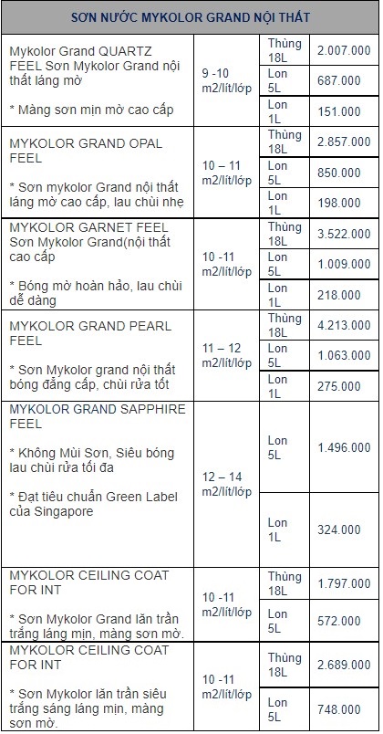 Xem qua bảng báo giá thườn hiệu sơn Mykolor: