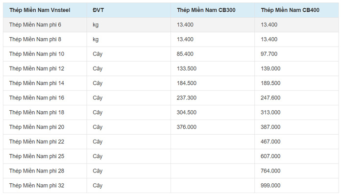 Thép miền Nam chính là loại thép phổ biến gần nhất trên thị trường hiện nay. Dưới đây là bảng báo giá thép miền nam tại Hải Dương mới nhất 2024 tính đến thời điểm hiện tại.