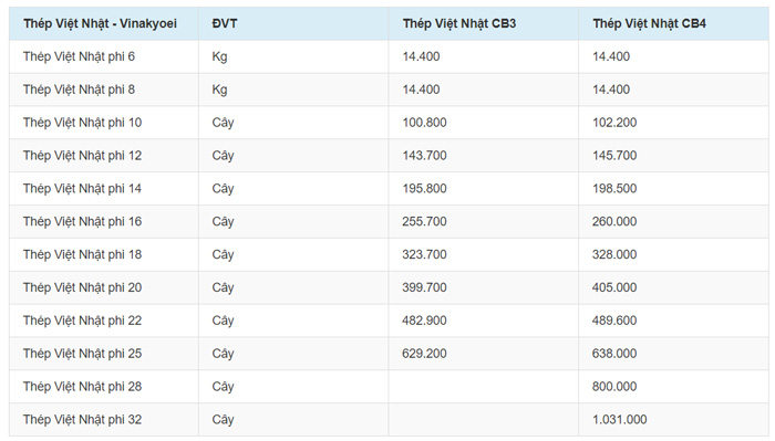 Thép Việt Nhật cũng là một tên tuổi lớn có tiếng trong làng sắt thép Việt Nam, do đó giá loại thép này cũng nhận được sự quan tâm của nhiều khách hàng.