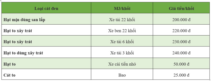Bảng giá cát đen
