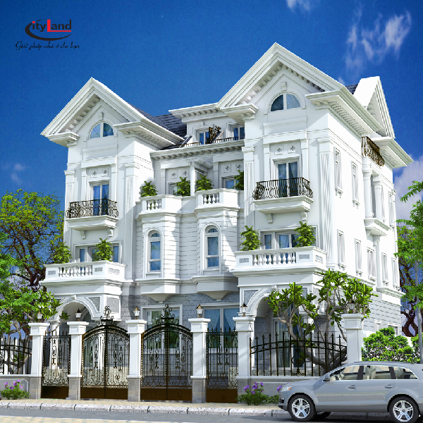 Một trong những công trình mà quý công ty đã thực hiện với quy mô xây dựng 3 tầng áp dụng phong cách kiến trúc tân cổ điển. Nhìn ngay từ bên ngoài của công trình gây ấn tượng mạnh với thị giác của người nhìn về kích thước khá đồ sộ. Công trình sử dụng tone màu trắng, điểm nhấn là đường chỉ phào ở khu vực mặt tiền, ban công bằng sắt sơn đen tĩnh điện, thêm màu xanh từ tiểu cảnh cây xanh tại ban công.