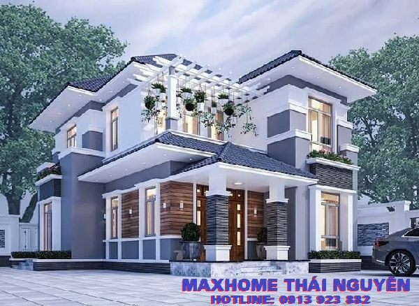 Một trong những công trình mà công ty Maxhome Thái Nguyên đã thực hiện. Mẫu nhà này được kiến trúc sư sử dụng phong cách kiến trúc hiện đại với đặc điểm nổi bật với khối vuông vức giúp không gian sinh hoạt được tối đa hơn. Chú ý trong công trình này ở vườn treo min ở khu vực ban công tầng 2. Thay vì để ban công trống, kiến trúc sư thiết kế ban công khoảng không gian trống với hệ thống lam bên trên kết hợp tiểu cây xanh. Với không gian này, gia chủ sở hữu được một không gian xanh nhỏ trong nhà, tại đây gia chủ có thể bố trí bộ bàn ghế nhỏ để gia chủ có thể thưởng thức, nghỉ ngơi sau một ngày làm việc mệt mỏi