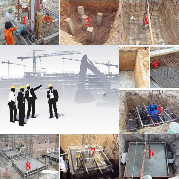 - Bước 1: Là khâu chuẩn bị giống như hình thức móng cọc và móng băng