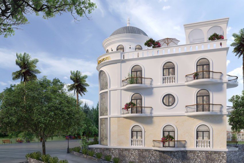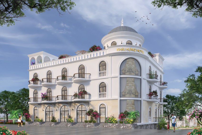 Những đường cong bo tròn mềm mại kết hợp với màu trắng kem trang nhã mang đến vẻ đẹp sang trọng mà vẫn tinh tế cho công trình. Nhìn từ xa, du khách chắc chắn không nghĩ rằng đây là khách sạn 2 sao mà có thể sẽ liên tưởng đến một lâu đài cổ dành cho giới quý tộc nào đó.