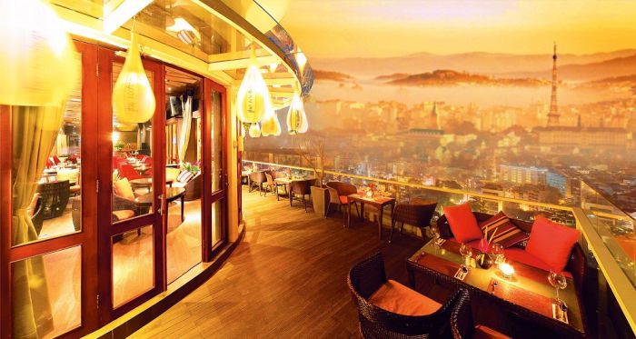 Phần sân thượng, chủ đầu tư thiết kế quán café Matineux Coffee Bar- đây là nơi du khách thả hồn vào thiên nhiên, ngắm không gian núi rừng Đà Lạt khi đêm về, hào mình với cảnh quan núi rừng hùng vĩ. Bạn cũng có thể ngắm bình minh vào mỗi buổi sáng sớm hoặc hoàng hôn chốn núi rừng.