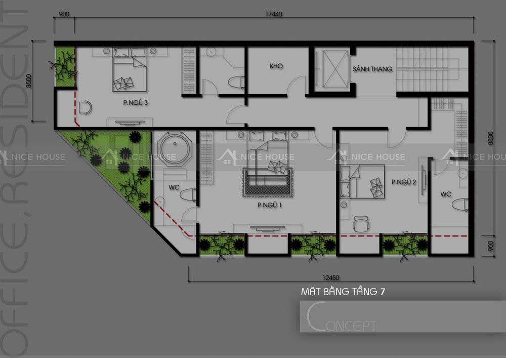Nhìn vào tổng thể thiết kế như vậy thì bạn đã thấy đủ cho không gian sinh hoạt của gia đình 4 người và không gian sinh hoạt riêng của từng thành viên.
