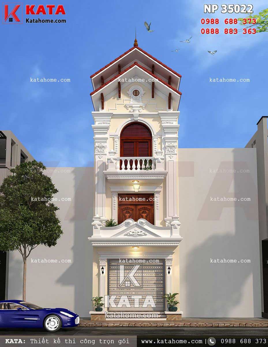 2. Mẫu nhà ống 3 tầng mặt tiền 5m đẹp theo hướng tân cổ điển