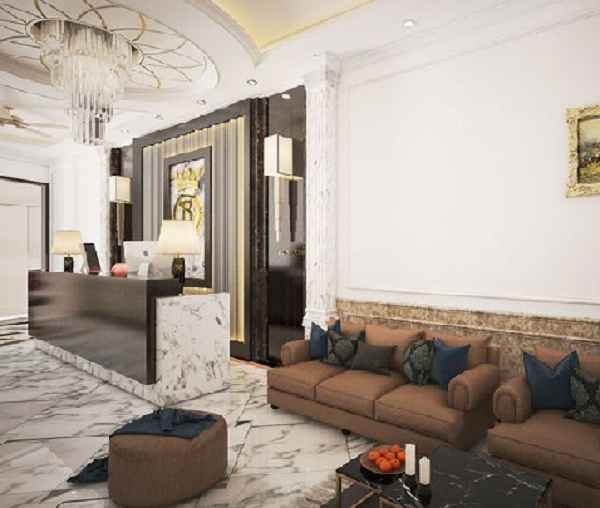 Phối cảnh 3D để gia chủ tương lai dễ dàng hình dung hơn khu vực tầng 1 của căn nhà. Trong mẫu được đưa ra ở đây kiến trúc sư sử dụng tone màu trắng để sơn lên toàn bộ không gian, mang đến cảm giác về trang nhã cho gia chủ sở hữu. Phần trần được ốp thạch cao nổi kết hợp cùng với đèn pha lê chùm cùng với ánh đèn mang đến sự lung linh cho toàn bộ không gian. Điểm nhấn tạo ấn tượng chính nhờ sắc nâu từ đồ nội thất. Trong không gian này kiến trúc sư sử dụng đồ vật làm từ đá mang đến sự mạnh mẽ, hiện đại cho không gian.