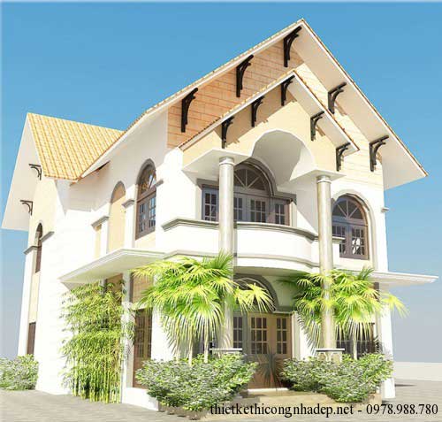 Phối cảnh bản vẽ biệt thự 2 tầng 8x15m kinh phí đầu tư 1,2 tỷ đồng