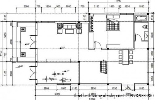 Đối với bản vẽ này, các nhà thiết kế sẽ chừa lại khoảng không gian trước để làm tiền sảnh và tiến hành xây dựng trên diện tích đất 8x15m. Khu vực tiền sảnh sẽ được chú trọng xây dựng theo thiết kế mái thái hiện đại và 2 cột bê tông.