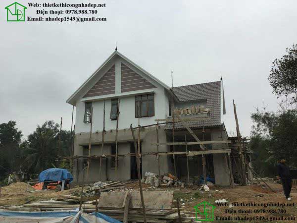 Hình ảnh thực tế biệt thự 2 tầng mái thái 8x11m tại Nghệ An