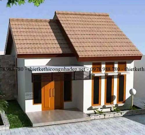 Chỉ với quy mô 6x8m, ngôi nhà khá nhỏ và đơn giản nằm trong không gian này. Thiết kế cấu trúc mái màu cam cho biết màu cam khá nổi bật. Ngoài ra, khung cửa sổ và cửa ra vào sử dụng vật liệu gỗ hoặc khung gỗ với vật liệu kính ấn tượng. Thiết kế đơn giản nhưng khá hài hòa khi kết hợp trên nền sơn trắng tinh khiết, phần mái bằng sẽ được xây dựng để che mái hiên.
