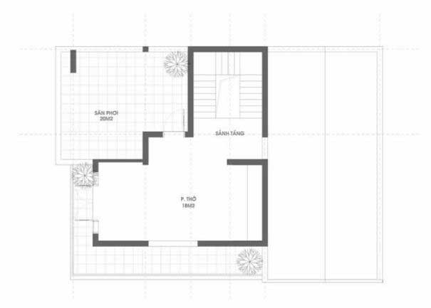 Tầng 3 thiết kế: phòng thờ bố trí khu vực riêng khá yên tĩnh, sân phơi đồ cho cả gia đình.