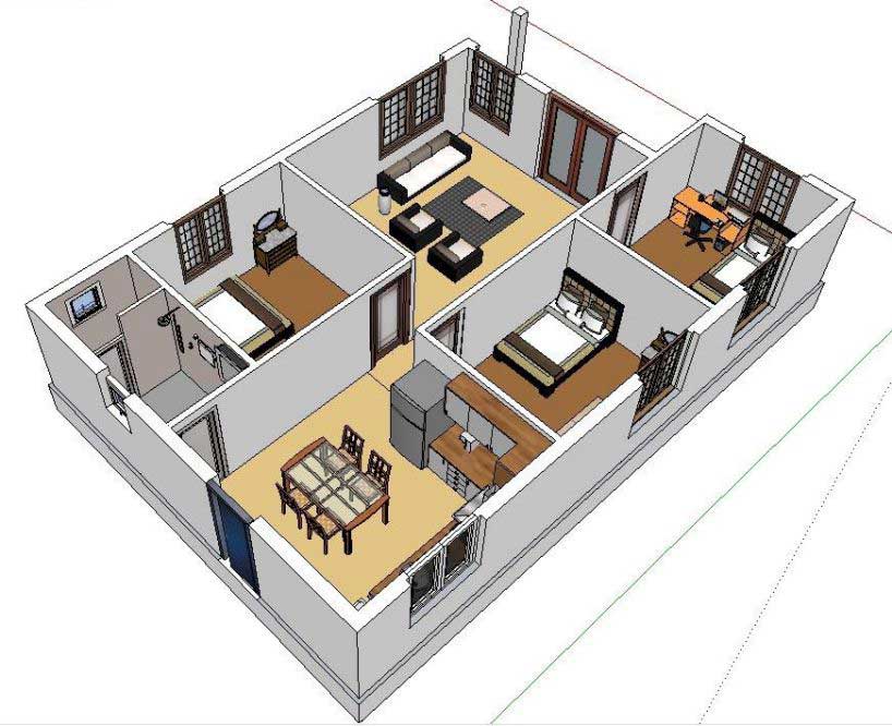 Trong những hình ảnh bản vẽ này, nếu bạn khó khăn hình dung, chúng tôi có sử dụng hình ảnh 3D dưới đây, cùng tham khảo để có cái nhìn toàn thể không gian nhé!