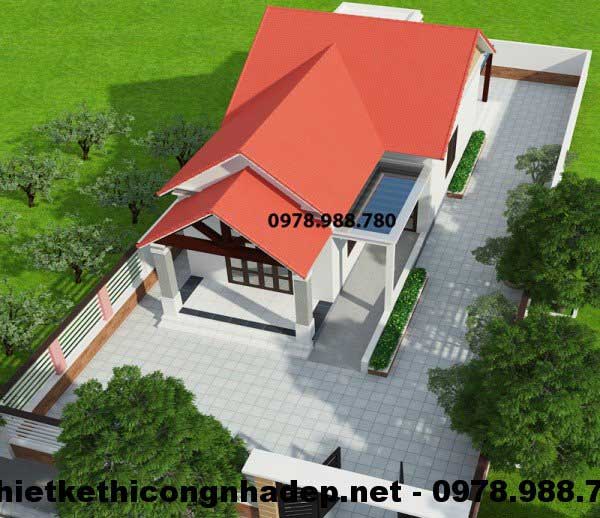 Phần mái thái được thiết kế đơn giản và tương đồng với những mẫu nhà đã được giới thiệu trước đây. Tuy nhiên ở phần đuôi sẽ lợp 1 phần mái bằng, khu vực đó có thể sử dụng làm nơi để téc nước phục vụ cho cả gia đình sinh hoạt. Đây là phương án dành cho nhà cấp 4 7x17m, riêng mẫu nhà 7x14 thì phần đuôi sẽ không còn nữa.