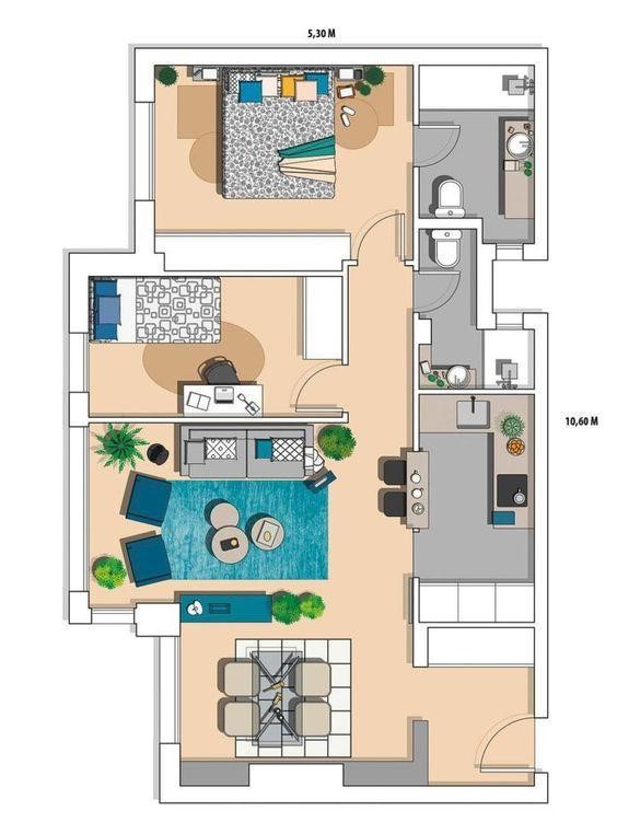 Thông qua bản vẽ, bạn hoàn toàn có thể nhận thấy giá trị nằm trong cấu trúc với sự tiện lợi mà kiến trúc sư dành cho gia chủ, đánh vào các nhu cầu, thích ứng và biến tấu không gian. Từ cửa chính ra vào, là hệ thống sinh hoạt chung với các không gian : Phòng khách nhà bếp, bàn ăn và trải dài theo là 2 nhà vệ sinh được đặt ở 2 vị trí với đường di chuyển từ mọi căn phòng trong ngôi nhà. Và cuối cùng là 2 hà ngủ nằm cạnh nhau và được ngăn cách với hệ thống tường nhằm tạo nên sự riêng tư cho cặp vợ chồng và dành cho con.
