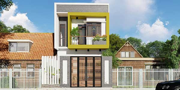 Lam che nắng được cách điệu bằng khung khối hình với màu sắc sặc sỡ, bắt như trên cũng sẽ làm cho mẫu nhà ống 2 tầng 7x12m trở nên nổi bật hơn rất nhiều.