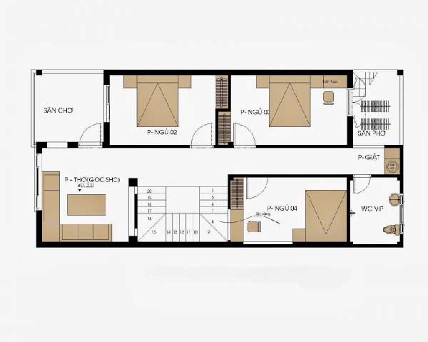 Tiến lên khu vực tầng 2 bao gồm: 3 ngủ, 1 phòng thờ,1 phòng sinh hoạt chung, 1 nhà vệ sinh, 1 khu vực sân phơi đồ và 1 sân chơi.