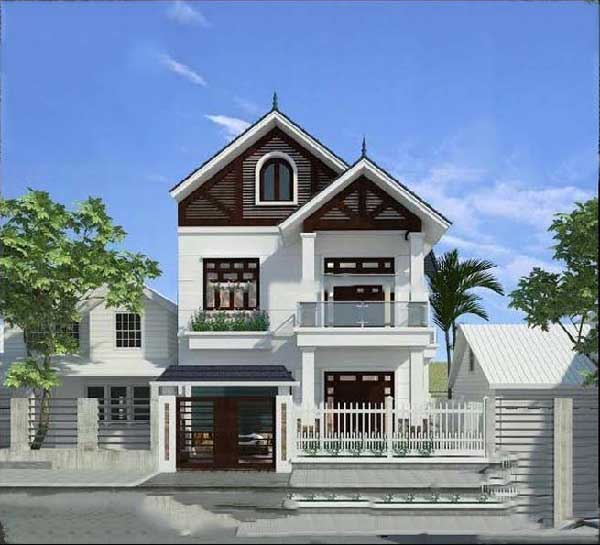 Mẫu nhà ống 2 tầng 7x12 thứ ba tiếp theo có kiến trúc tương tự với mẫu thiết kế thứ hai nhưng mang đến cảm giác của sự hiện đại và sự kết hợp tầng áp mái đặc trưng trong kiến trúc nhà châu Âu. Ban công tầng hai thay vì sử dụng họa tiết hoa văn chi tiết phức tạp thì mẫu thiết này hướng đến sự tối giản hơn, để làm nhiều hơn không gian phía trong nhà. Thay vì mái vòm đặc trưng, gia chủ sử dụng mái bằng với kiến trúc áp mái, thiết kế giúp cho gia chủ có thêm một không gian diện tích sử dụng với kiến trúc khá đặc biệt phía trong. Mái nhà với thiết kế mái Thái đặc trưng độ dốc lớn, bao phủ toàn bổ diện tích nhà. Sử dụng mái kép càng nhấn mạnh vào kiến trúc đồ sộ của căn nhà. Phần cổng rào của ngôi nhà này được chú trọng rất nhiều vào tiểu tiết cho thấy sự đầu tư kỳ công của gia chủ, làm nổi bật lên kiến trúc tân cổ điển của ngôi nhà.