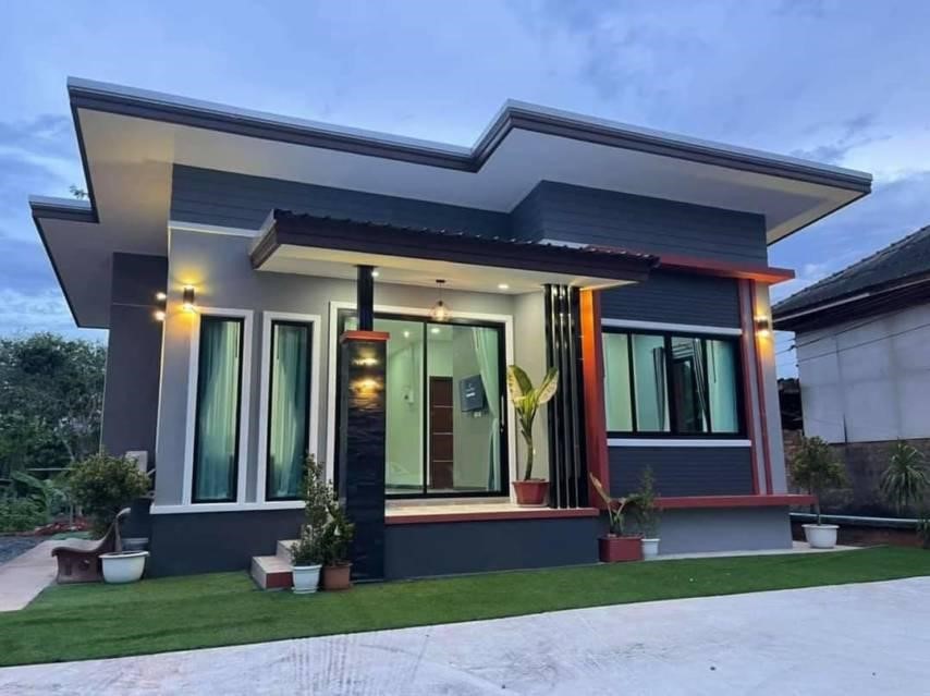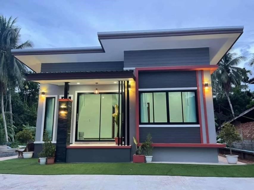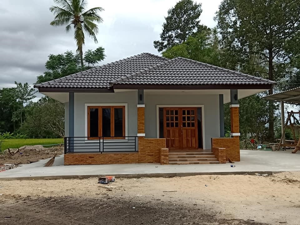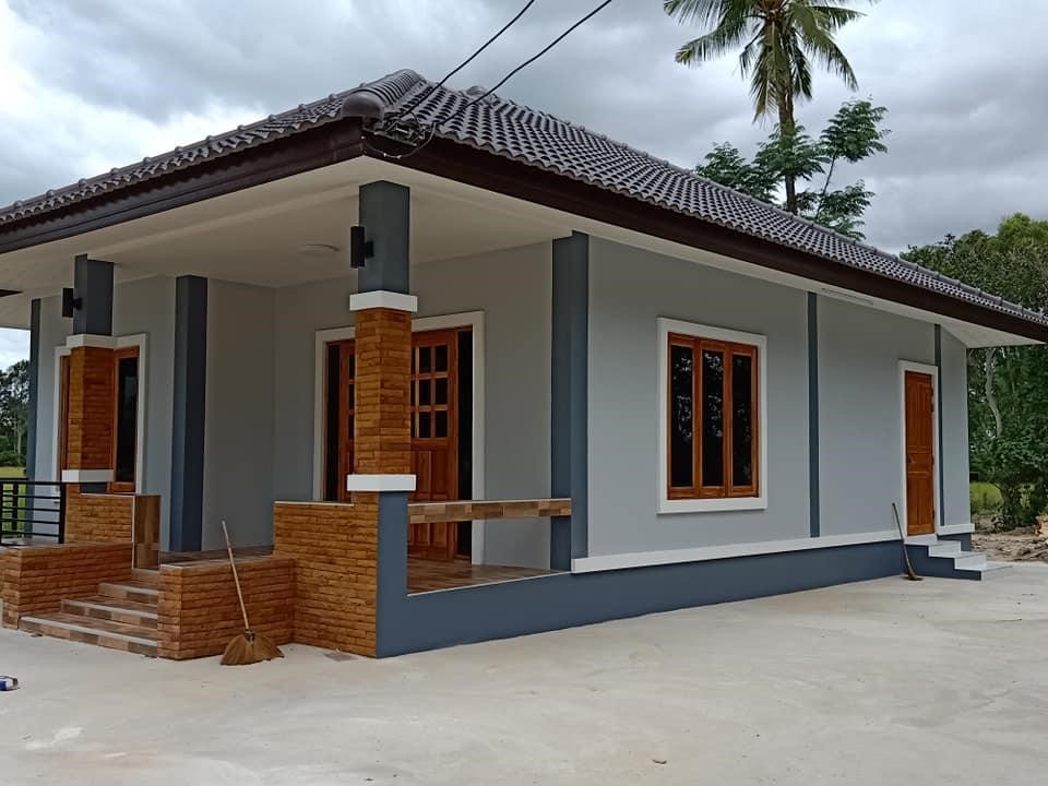 Ngôi nhà xây dựng trên thửa đất khá rộng và nằm ở vùng ngoại ô thành phố và diện tích rộng là điều kiện tốt cho việc xây dựng một ngôi nhà ống đẹp 1 tầng dạng mái thái theo ý tưởng xây dựng từ phía chủ nhà. Việc phối hợp tạo điểm nhấn trong phong cách xây dựng từ ngôi nhà được đi theo gam màu trầm tính, khi gia chủ sử dụng phần mái ngói là vật liệu lợp. Với khuôn mẫu từ kết cấu mái thái làm ngôi nhà trở nên sang trọng hơn rất nhiều.