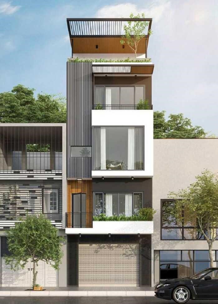 1. Mẫu thiết kế nhà ống 4 tầng giả biệt thự mini 2 mặt tiền :