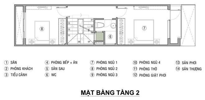 Hiện lên với mặt bằng tầng 1 với 1 phòng khách, hệ thống cầu thang và 1 nhà bếp kèm 1 nhà vệ sinh phía cuối. Với mặt bằng tầng 2 gồm : 1 phòng sinh hoạt, 1 phòng làm việc 1 nhà vệ sinh. Mặt bằng tầng 3 gồm 2 phòng ngủ kết hợp các tiện ích sinh hoạt bên trong và cuối cùng là mặt bằng tầng 4 với 1 phòng ngủ 1 nhà vệ sinh 1 gian thờ và 1 sân thượng rộng rãi. Đây là nơi mà gia chủ có thể sử dụng làm không gian trồng cây xanh, sân phơi, sân tập hoặc các tiện ích sinh hoạt khác nhau từ định hướng xây dựng từ gia chủ.