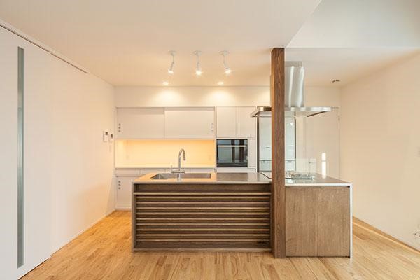 Nhà bếp nằm cạnh ngay phòng khách mà được xây dựng theo lối không gian mở đầy hiện đại. Với các vật liệu, vật dụng hiện đại đã làm nên một góc máy đẹp mà chúng tôi muốn giới thiệu đến mọi người cùng tham khảo. Ngôi nhà vừa được hoàn thiện nên chưa có nhiều đồ dùng nội thất bên trong, theo đánh giá chung thì đây là một không gian sống hoàn hảo cho những ai yêu mến sự tối giản trong hình thức tạo hình từ bố cục nhằm mang đến sự tiện nghi để mọi thành viên có thể nhận được.